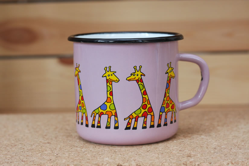 Smaltovaný hrnek 8cm - růžová - žirafa