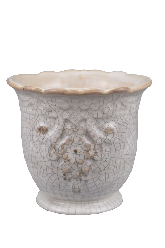 Keramický květináč Antik béžový popraskaný 12x13,5 cm