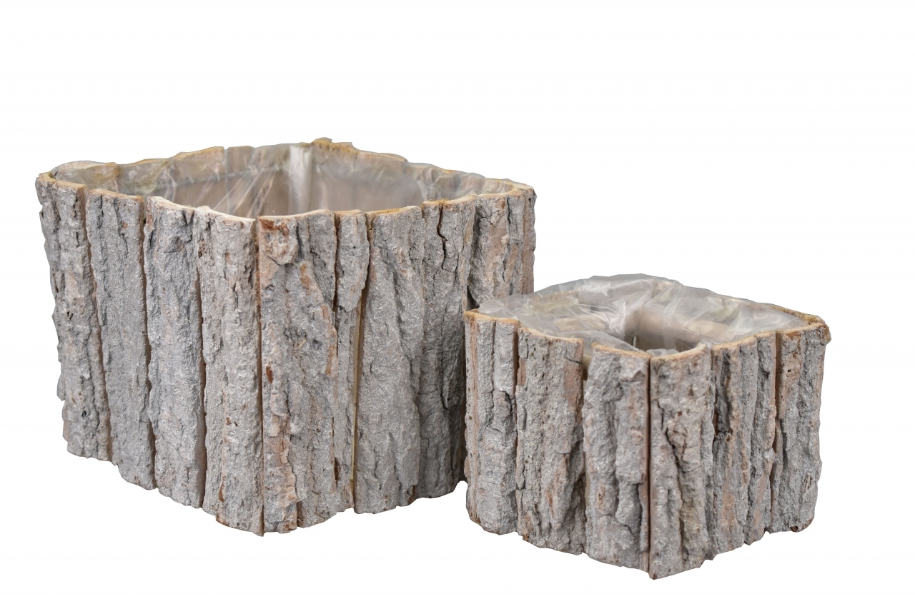 Sada 2 ks dřevěných obalů na květináč z kůry stromu.  Součástí je igelitová výplň.Materiál: kůra stromuRozměr:velkývýška 14,5 cmšířka 18 cmhloubka 18 cmmalývýška 10 cmšířka 13 cmhloubka 13 cm przeczytaj całość