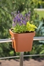 Plastový květináč na zábradlí balkónů a také plotů. Ve spodní části má po celé délce vlisovaný zářez s protiskluzovou gumou, který se na zábradlí položí a plastovými úchyty se pod zábradlím zajistí. Šířka zábradlí maximálně 6 cm. Rozměr: výška 24 cm šířka 29 cm délka 29 cm przeczytaj całość