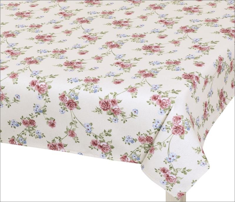 Ubrus DITA - pnoucí růžička - růžová, béžová, zelená - 120x140 cm