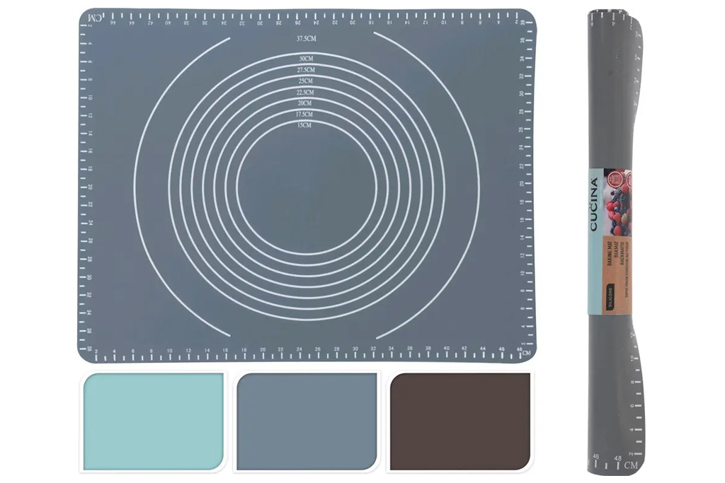 Potřebujete nový kuchyňský vál na pečení? S tímto silikonovým válem si snadno připravíte perfektně vyválené těsto na pečení, třeba na pizzu nebo cukroví. Díky svému materiálu je velmi odolný a snadno se udržuje v čistotě. Velikost válu 50x40cm je dostatečná pro přípravu větších dávek těsta....