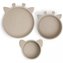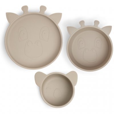 Jídelní set obsahuje talíř, misku a mističku roztomilý design set je vyroben z LFGB certifikovaného silikonu bez jakýchkoliv škodlivých chemikálií silikon je měkký a praktický je vhodný do myčky nádobí při pádu na podlahu se nerozbije rozměry: talíř: 17 x 4 cm, mistička: 8 x 4,5 cm, miska: 11,5 x...