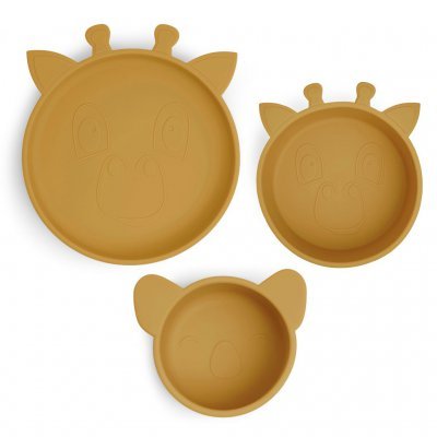 Jídelní set obsahuje talíř, misku a mističku roztomilý design set je vyroben z LFGB certifikovaného silikonu bez jakýchkoliv škodlivých chemikálií silikon je měkký a praktický je vhodný do myčky nádobí při pádu na podlahu se nerozbije rozměry: talíř: 17 x 4 cm, mistička: 8 x 4,5 cm, miska: 11,5 x...