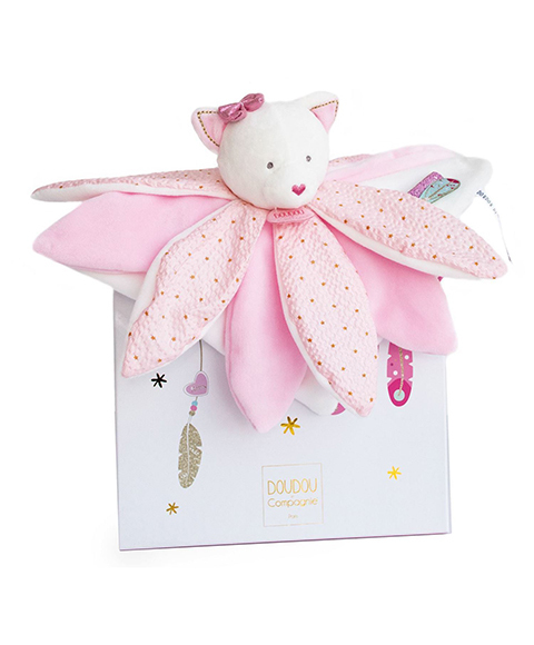Doudou Dárková sada - plyšový usínáček růžová kočka 26 cm
