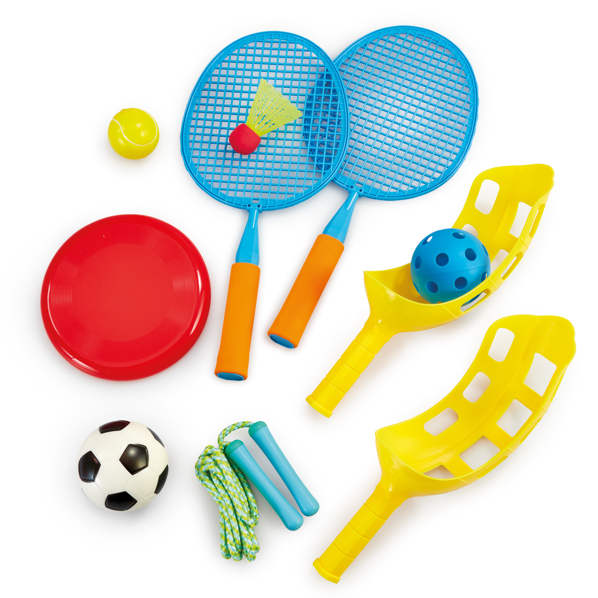 Sada venkovních her obsahuje: pálky, sadu scoop ball, švihadlo, létající talíř, fotbalová síť. Věk: 3+ przeczytaj całość