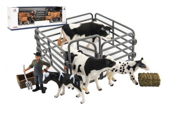 Zvířátka domácí farma s doplňky sada plast 3 druhy v krabičce 43x14x10cm
