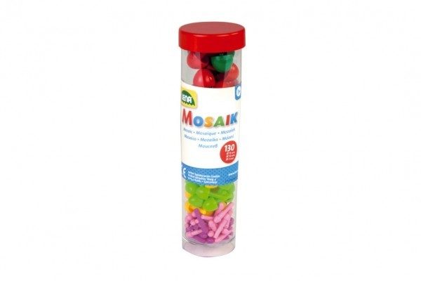 Kolíčky+kloboučky plast k mozaikám zelené+mix 130ks v dóze 4,5x16cm