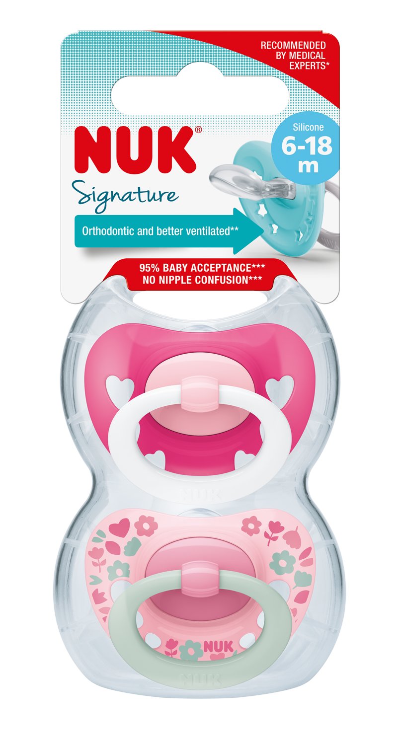 NUK Signature dudlík 6-18 m růžový 2 ks