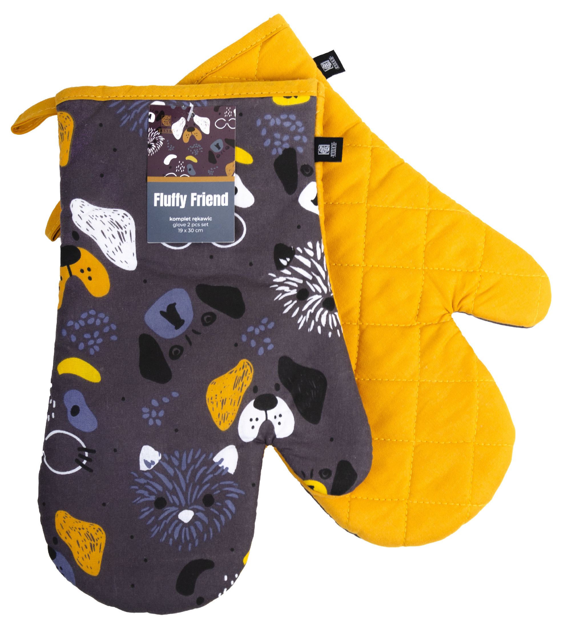 Kuchyňské bavlněné rukavice - chňapky FLUFFY FRIEND pejskový motiv 100% bavlna 19x30 cm Essex