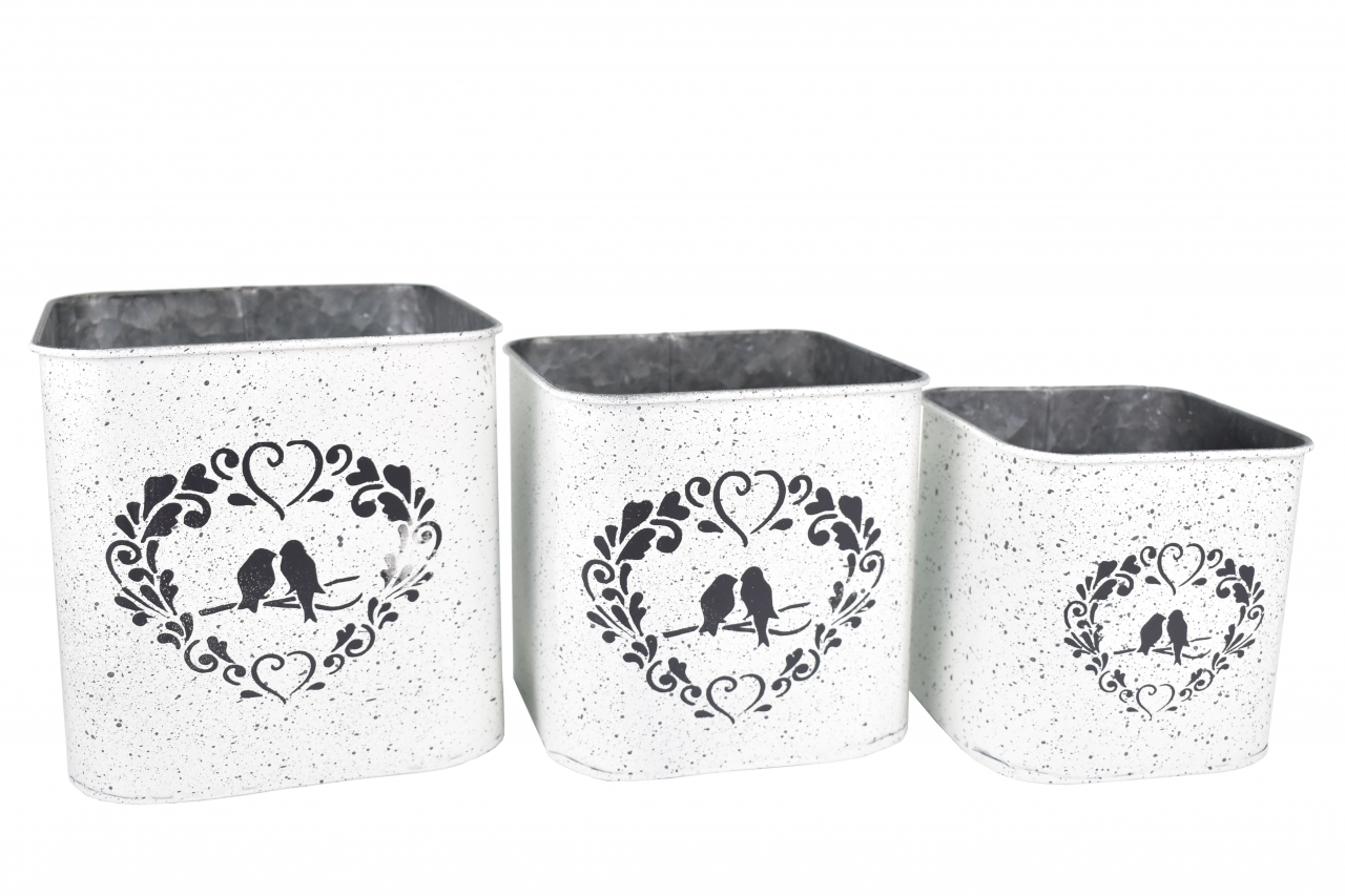 Sada 3 ks oblíbených plechových květináčů na hrnkové květiny. Povrch kropenatý, matný s potiskem. Květináč není 100% voděodolný.Materiál: pozinkovaná ocelRozměry:velkývýška 17 cmšířka 17 cmhloubka 17 cmstřednívýška 15 cmšířka 15 cmhloubka 15 cmmalývýška 13 cmšířka 13 cmhloubka 13 cm przeczytaj całość