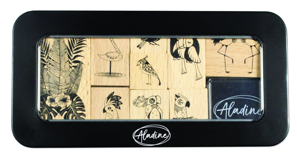 Dřevěná razítka - dárkové balení v plechové krabičce PAPOUŠCI
