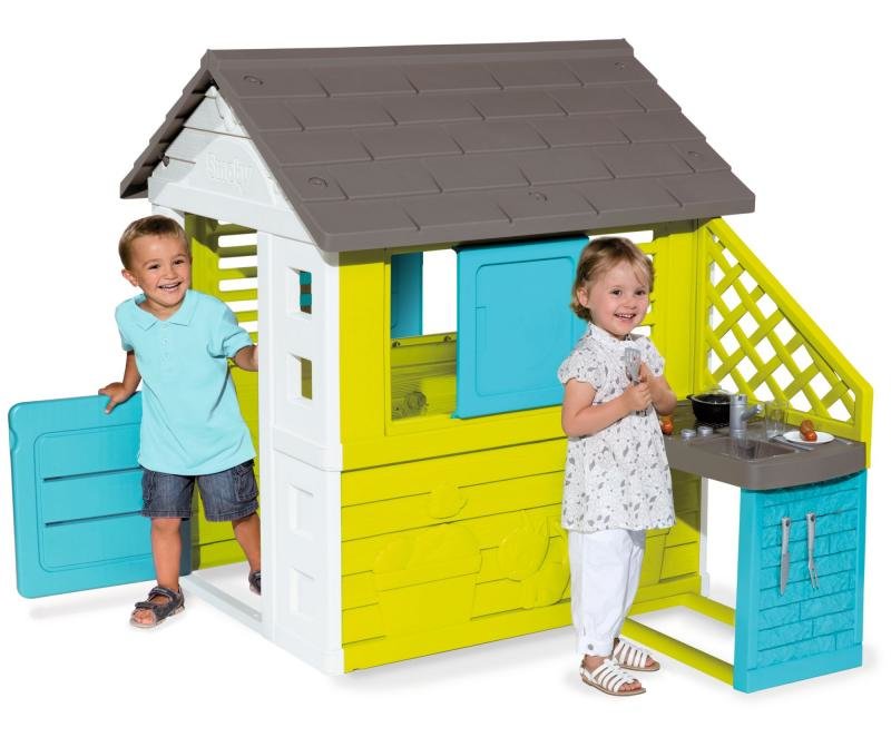 Domeček na zahradu pro děti v modro-zeleném provedení s venkovní kuchyní. Stabilní stěny, otevírací vrátka a má 3 okna s 2 žaluziemi a 2 posuvné okenice. Kuchyň s pákovou baterií a jednou plotýnkou, nechybí potřebné příslušenství. Kvalitní plast, ochrana proti UV záření. Rozměry sestaveného... przeczytaj całość