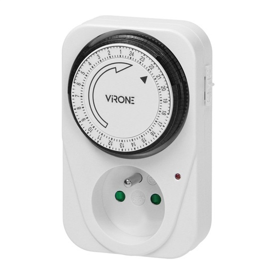 Zásuvka s mechanickým 24h časovačem; napětí: 230V/50Hz; typ hnízda: 2P+Z; proud: 16A; max.zatížení: 3500W; stupeň ochrany: IP20; Minimální doba zapnutí a vypnutí: 15 minut przeczytaj całość