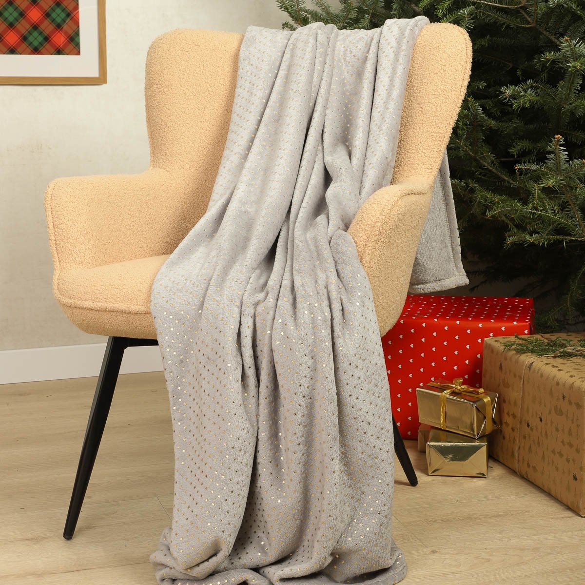 Nadýchaná a měkká - Zdobená drobnými zlatými hvězdičkami - Hřejivá vánoční deka s hvězdamiNení nic příjemnějšího než se v chladném zimním dni zabalit do příjemné deky a v klidu se věnovat knize, oblíbenému seriálu nebo rozhovoru s kamarádkou. Po celé vánoční a novoroční období vám deka HOMLA Pari...