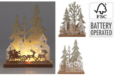 Svítící dřevěný domek se stromy - 2 varianty, 15 x 12 cm