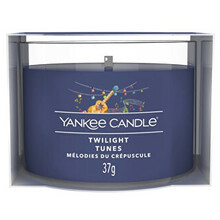 Vzdálené zvuky hudby, nesoucí se za soumraku nad setmělým parkem, přinášejí vůni kardamonu, akvamarínu a dřevitých tónů. Vůně je skvělá i pro muže. Votivní svíčka voní až 10 hodin a její rozměry jsou 5,5 x 4 cm. Můžete ji zapálit samostatně nebo víc svíček najednou, kdy si vytvoříte vonný akord na míru. Jsou vhodným zkušebním balením před zakoupením větší svíčky.