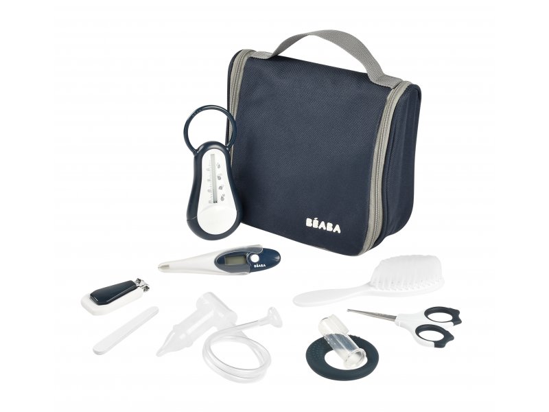 Závěsné toaletní pouzdro Beaba obsahuje devět základních doplňků pro hygienu a péči o dítě v kvalitním provedení: teploměr do vody, digitální teploměr, nůžky a kleštičky na nehty, kartáč na vlasy, kousátko, masážní kartáček na dásně, odsávačku hlenů a pilník na nehty. Pouzdro nabízí množství...