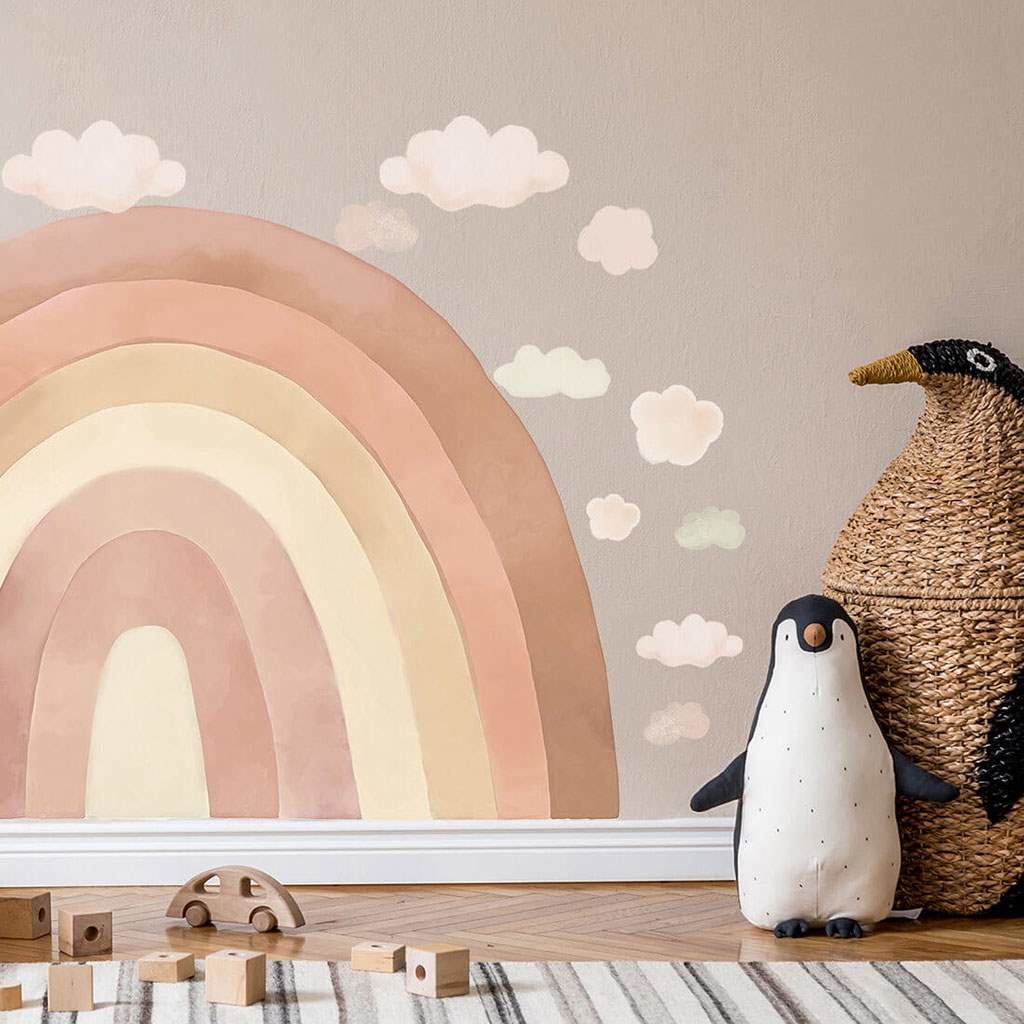 Krásná nálepka na zeď Duha. Akvarel duha bude vypadat báječně v každém dětském pokojíčku. Jemné, opravdu světlé barvy dodávají stěně osobitý charakter. Duhové samolepky jsou díky své velké ploše ideální k nalepení za postel, nebo do dětského koutku. Jsou krásnou dekorací, zároveň chrání zeď před...