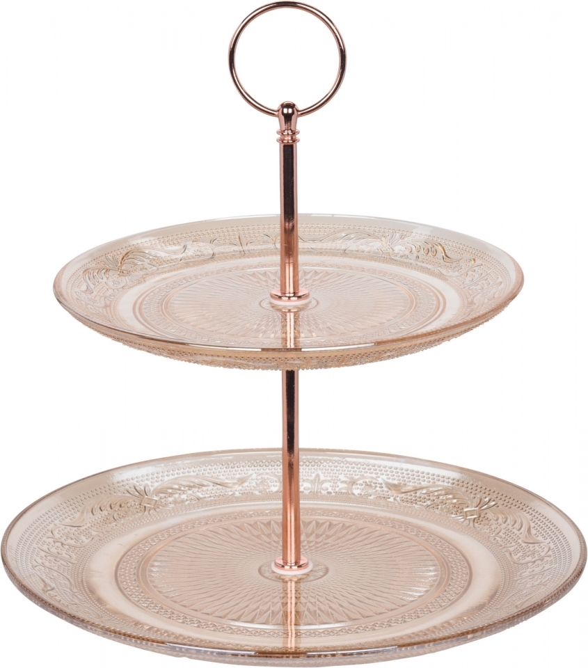 Dvoupatrový skleněný etažér v okrové barvě.Materiál: skloRozměry:průměr talíře 18 cm, 22,5 cm przeczytaj całość