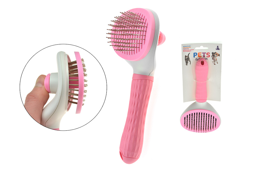 Ta szczotka do sierści jest idealna do czyszczenia sierści Twojego pupila. Posiada specjalny przycisk, który pozwala łatwo usunąć włosy zatrzymane w szczotce, dzięki czemu można ją szybko użyć ponownie. Szczotka ma efektywny kształt oraz wysokiej jakości włosie, które doskonale usuwa kurz i zanieczyszczenia z sierści Twojego zwierzaka. Jej ergonomiczny kształt gwarantuje wygodne trzymanie podczas czesania. Ta szczotka nadaje się dla psów i kotów oraz może być używana na sierść o różnej długości. Dzięki tej szczotce pozbędziesz się nie tylko zabrudzeń, ale także nadmiaru sierści, co jest szczególnie przydatne w okresie linienia. Szczotka do sierści z przyciskiem do łatwego czyszczenia jest niezbędnym dodatkiem dla każdego właściciela zwierzęcia domowego. Zamów ją już dziś i ciesz się wygodnym i prostym czesaniem sierści swojego pupila.