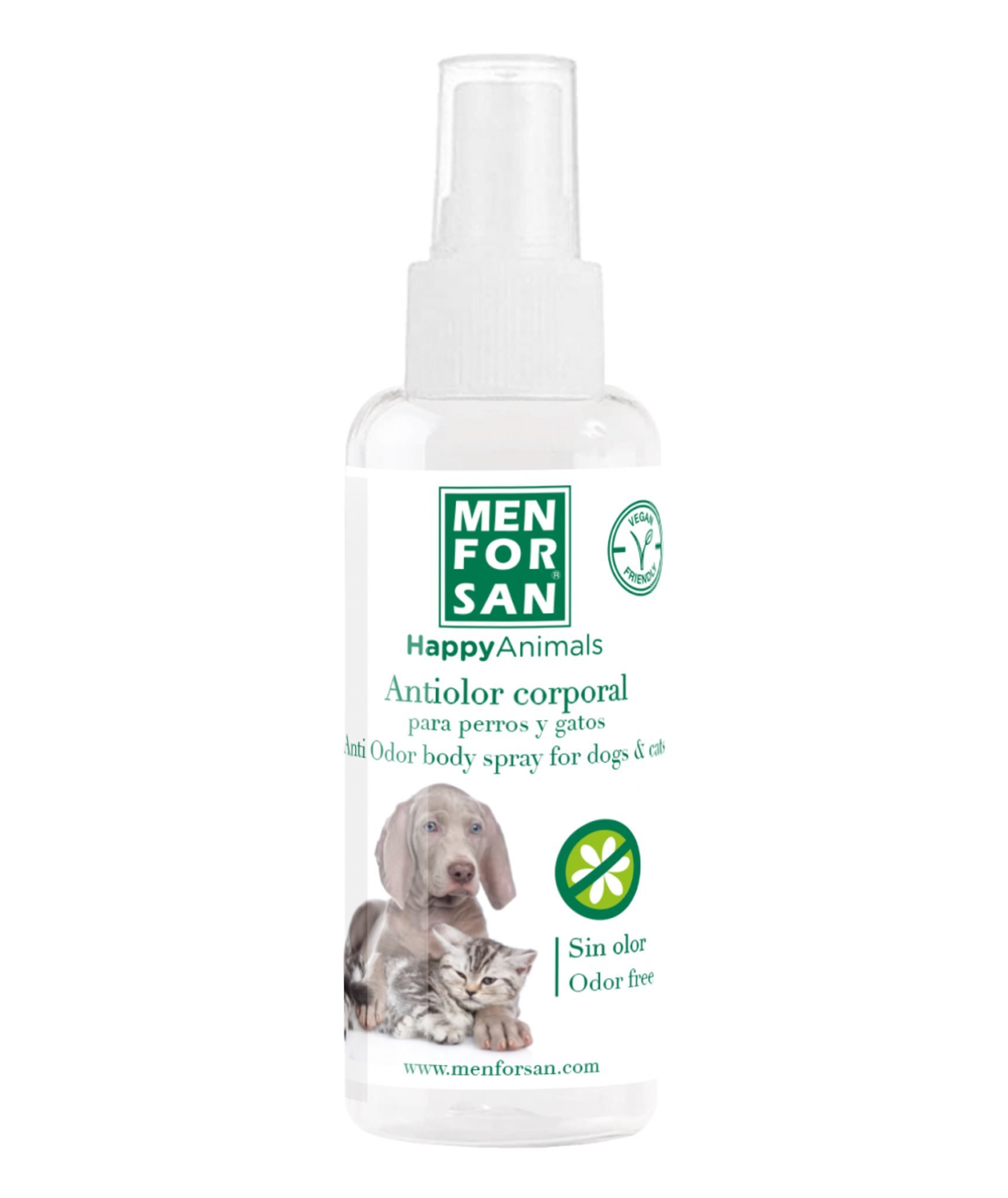 Menforsan sprej odstraňuje nepříjemné pachy z jakékoli části těla zvířete. Tento produkt neobsahuje žádný parfém ani vůni, takže odstraňuje pachy, aniž by je maskoval. Má neutrální pH přizpůsobené srsti domácího mazlíčka, a proto je vhodný pro časté používání. Objem 60 ml.
