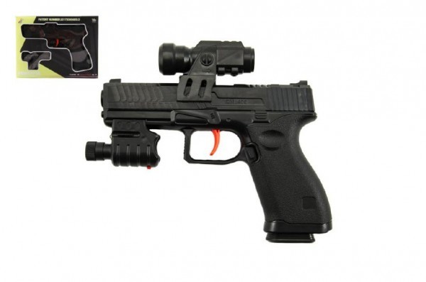 Pistole na vodní kuličky 6mm plast 17cm s laserem na baterie v krabici 21x16x3,5cm
