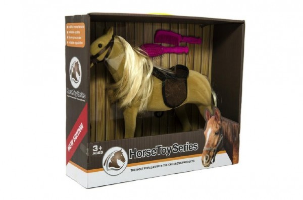 Kůň česací velký fliška s doplňky plast 38cm v krabici 40x34,5x12cm