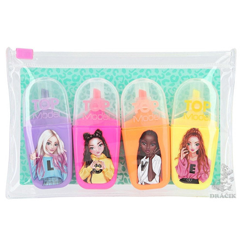 Sada zvýrazňovacích fixů Top Model, 4 barvy ve fóliovém pouzdře