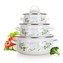 6-częściowy zestaw emaliowanych garnków ze szklaną pokrywką OLIVES, odpowiedni do gotowania różnych potraw. Garnki można wkładać do piekarnika bez szklanych pokrywek, które mają plastikowe uchwyty. Zestaw zawiera: garnek 14 x 7 cm, 18 x 8,5 cm, 22 x 10,7 cm. Nadruk na dnie zawiera odpowiednie... przeczytaj całość