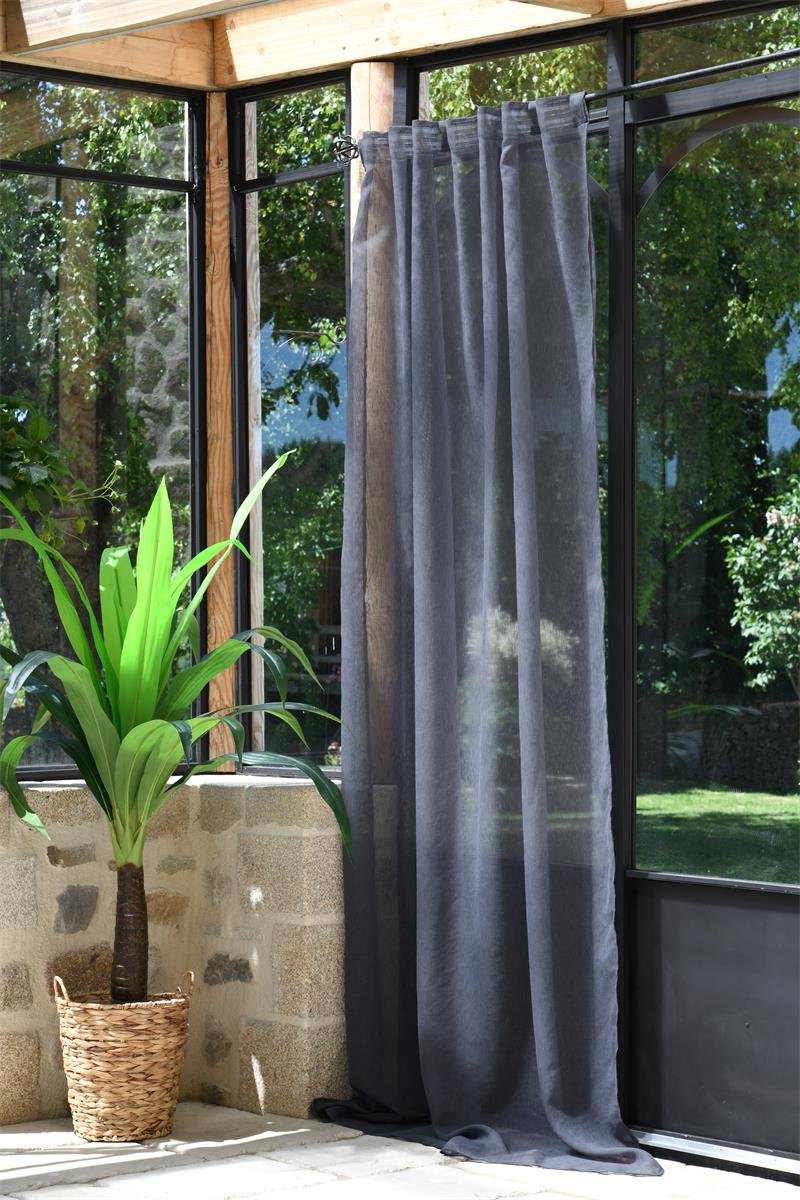 Dekorační záclona s poutky režného vzhledu DERBY tmavě šedá 140x260 cm (cena za 1 kus) France