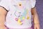 Bílé tričko je ozdobeno jednorožcem s barevnou hřívou a krásně nařasená tutu sukýnka je plná barevných puntíků.