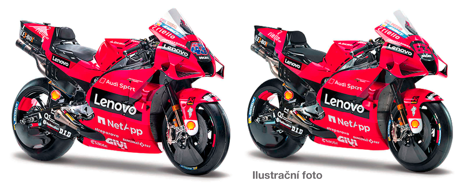 Ducati Lenovo Team 2021. Model motocyklu v měřítku 1:18 vyrobený z kovových a plastových dílů. Motocykl je zabalen v papírové krabičce s fóliovým průhledem. Otočná řídítka, odpružená zadní vidlice. Varianty: #43 Jack Miller #63 Francesco Bagnaia. Assort je náhodný mix modelů. Výběr nelze... przeczytaj całość