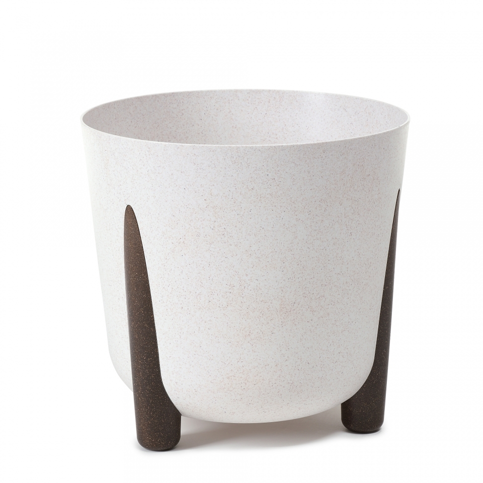 Plastový květináč Frida eco wood 340 mm, bílo-béžový