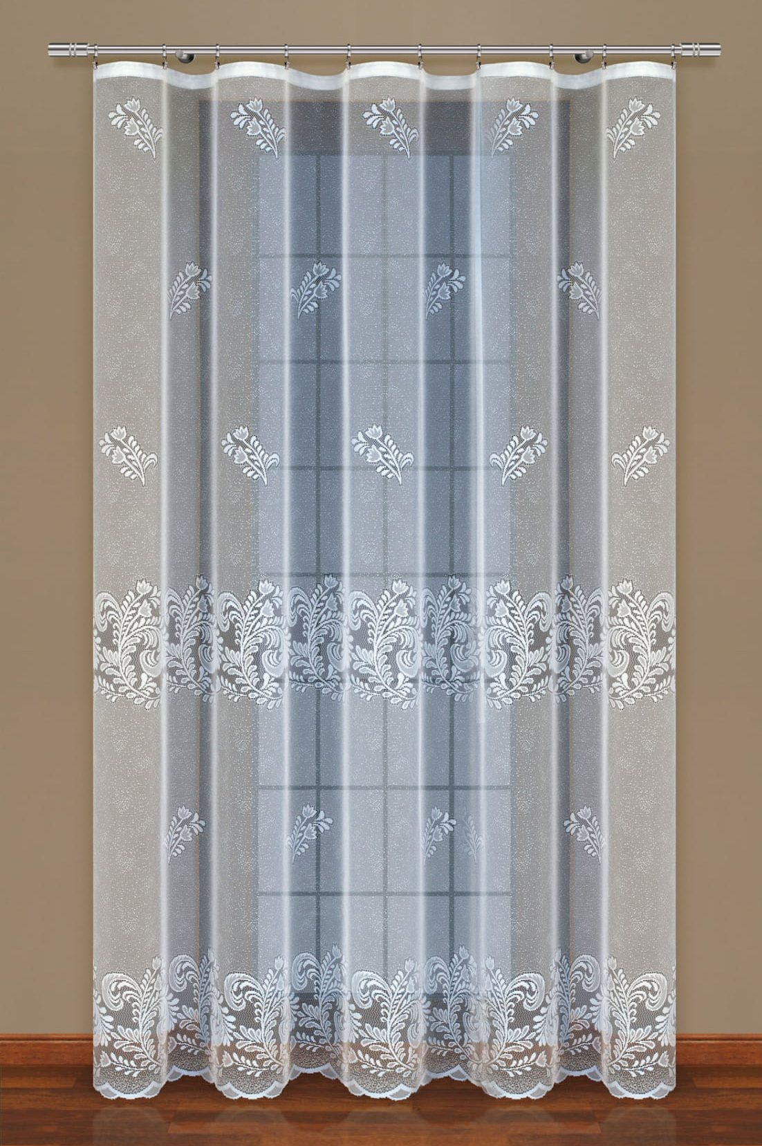 Kvalitní žakárová hotová dekorační záclona s řasící páskou v moderním provedení do kuchyně nebo obývacího pokoje v rozměru 200x250 cm. Záclona je připravena na zavěšení na žabky nebo háčky. 1 kus v balení. Záclona má řasící pásku 3,5 cm.