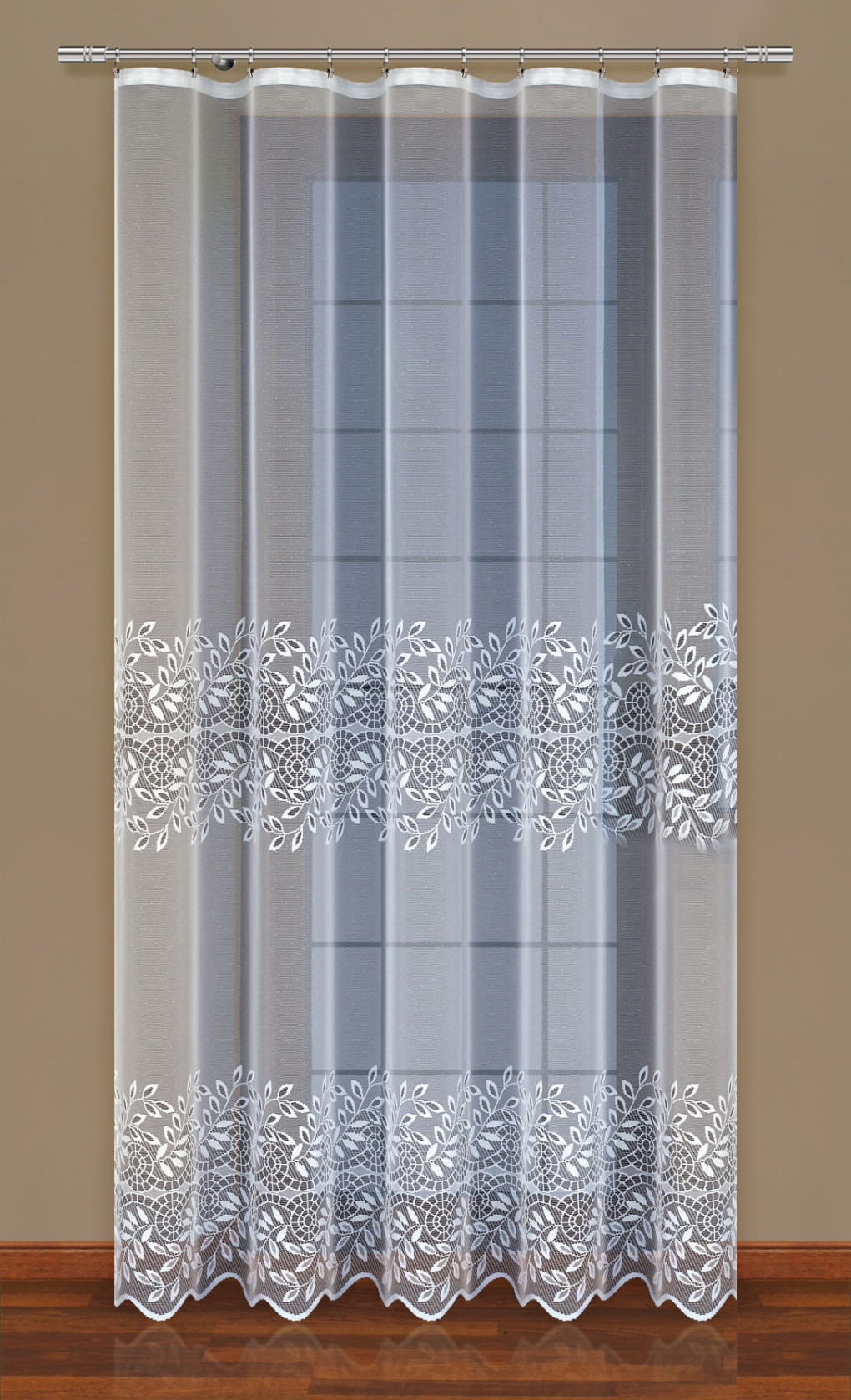 Kvalitní žakárová hotová dekorační záclona s řasící páskou v moderním provedení do kuchyně nebo obývacího pokoje v rozměru 200x250 cm. Záclona je připravena na zavěšení na žabky nebo háčky. 1 kus v balení. Záclona má řasící pásku 3,5 cm.