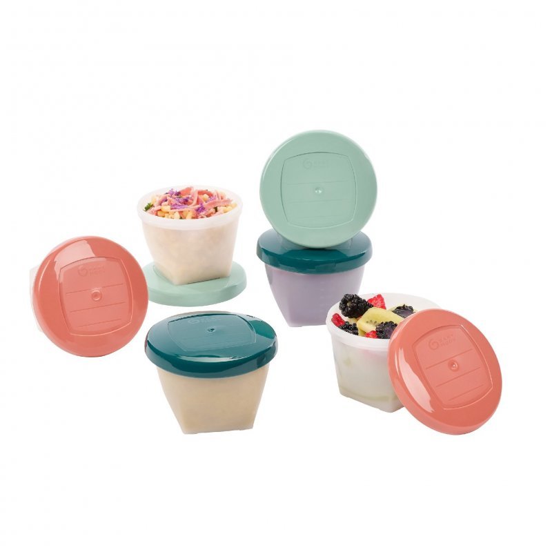 sada 6 misek se šroubovacími, barevnými víčkyvhodné do mikrovlnky (max. 30 sekund při 800W), myčky na nádobí i mrazničkylze v nich ohřívat jídlo ve vodní lázni či v ohřívačce lahvísterilizovatelné při max. teplotě 80°Cse stupnicí a místem pro psaní poznámekstohovatelnéskladné, prázdné se dají...