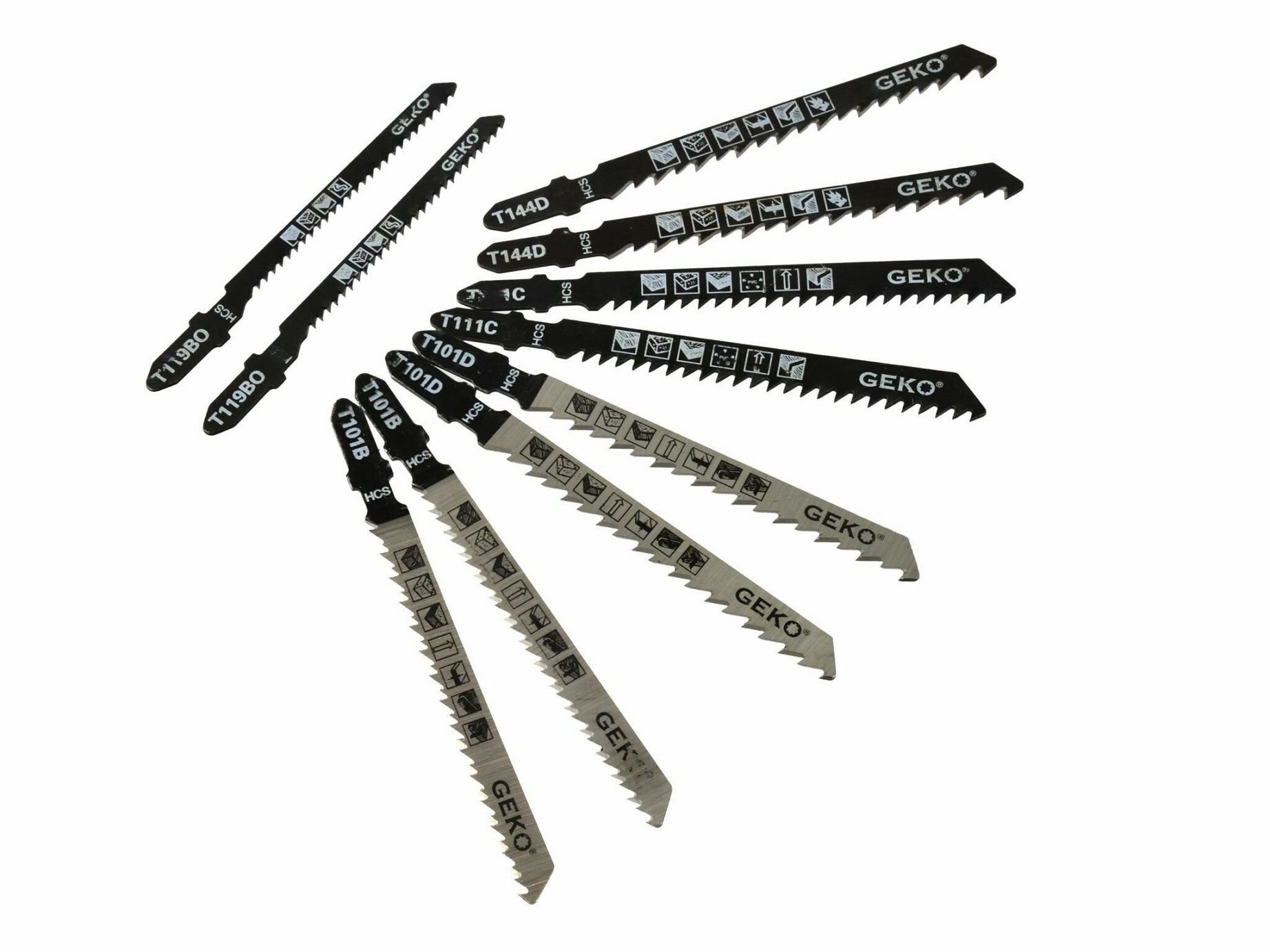 Plátky do přímočaré pily, sada 10ks, GEKOHlavní technické parametry: 2x nůž T144D2x nůž T101DP2x nůž T101B2x nůž T111C1x nůž T119BO1x nůž T101AO przeczytaj całość