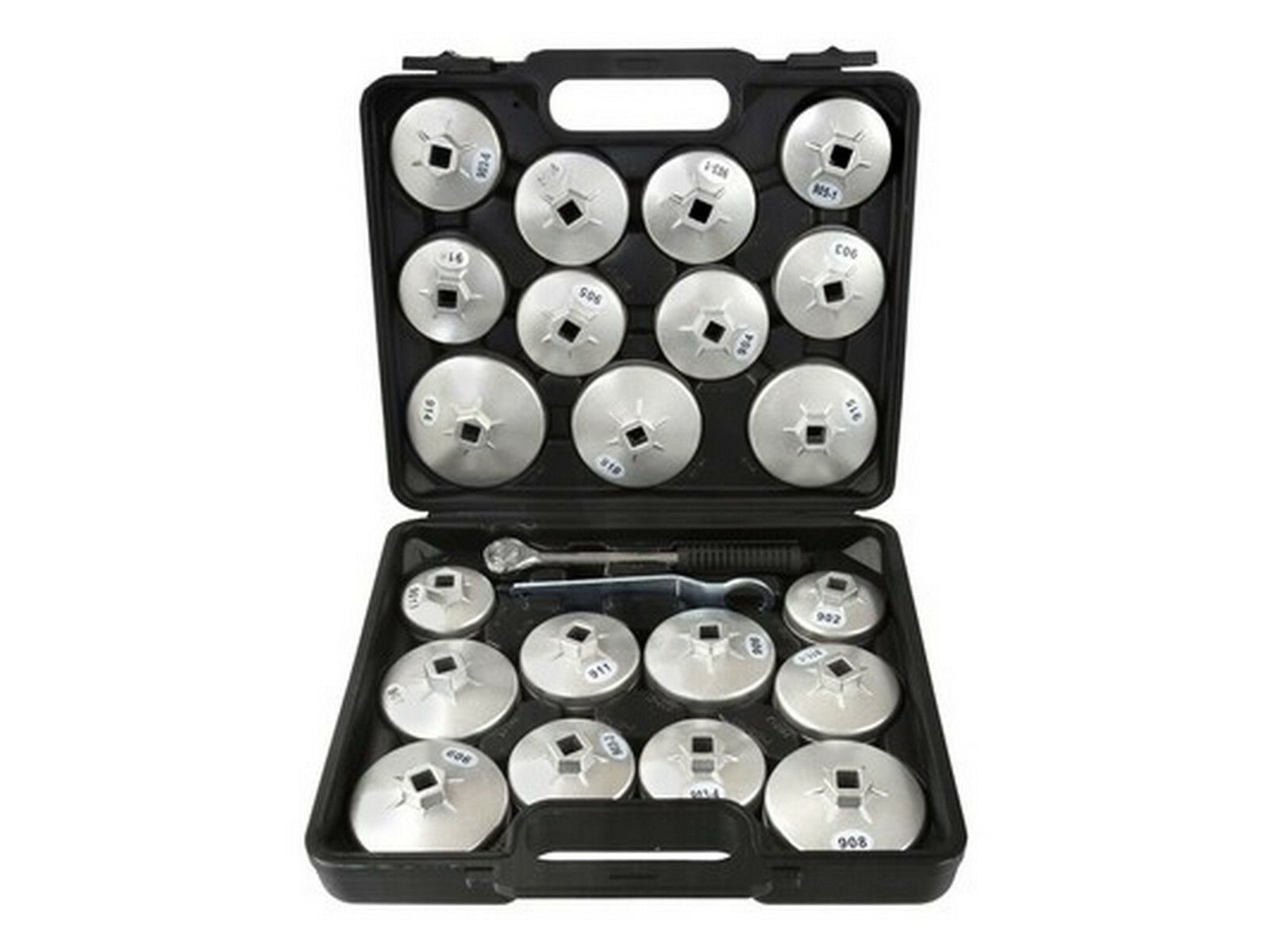 Sada 21 klíčů pro odšroubování olejových filtrů. Vyhovuje většině osobních automobilů vyráběných na evropských, amerických a asijských trzích.
