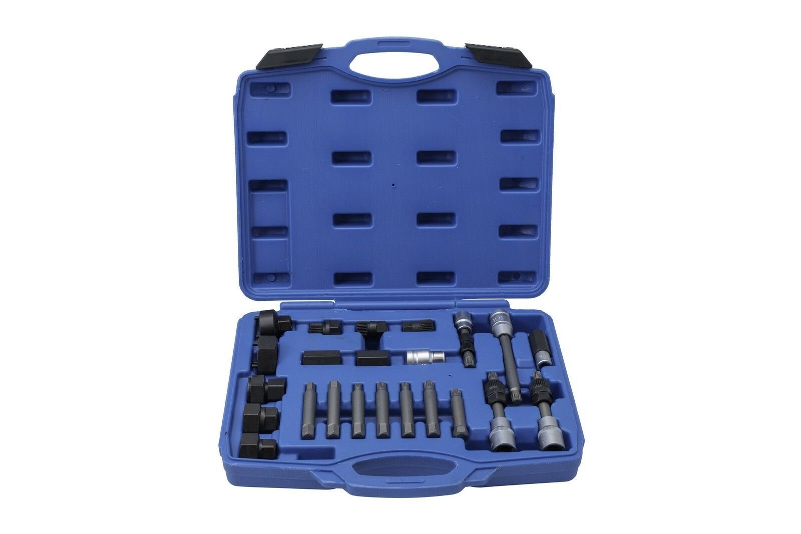 Speciální sada 22 dílná pro montáž alternátorů. Téměř pro všechny modely vozů např. Mercedes, BMW, Ford, VAG, Fiat, Renault, Porsche, Vauxhall, Toyota.