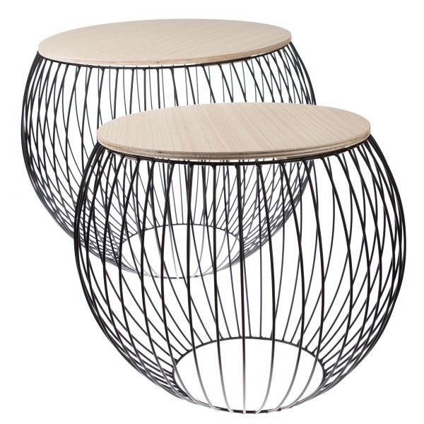 Odkládací stolek (dřevo, kov) - sada 2 ks, 0/1