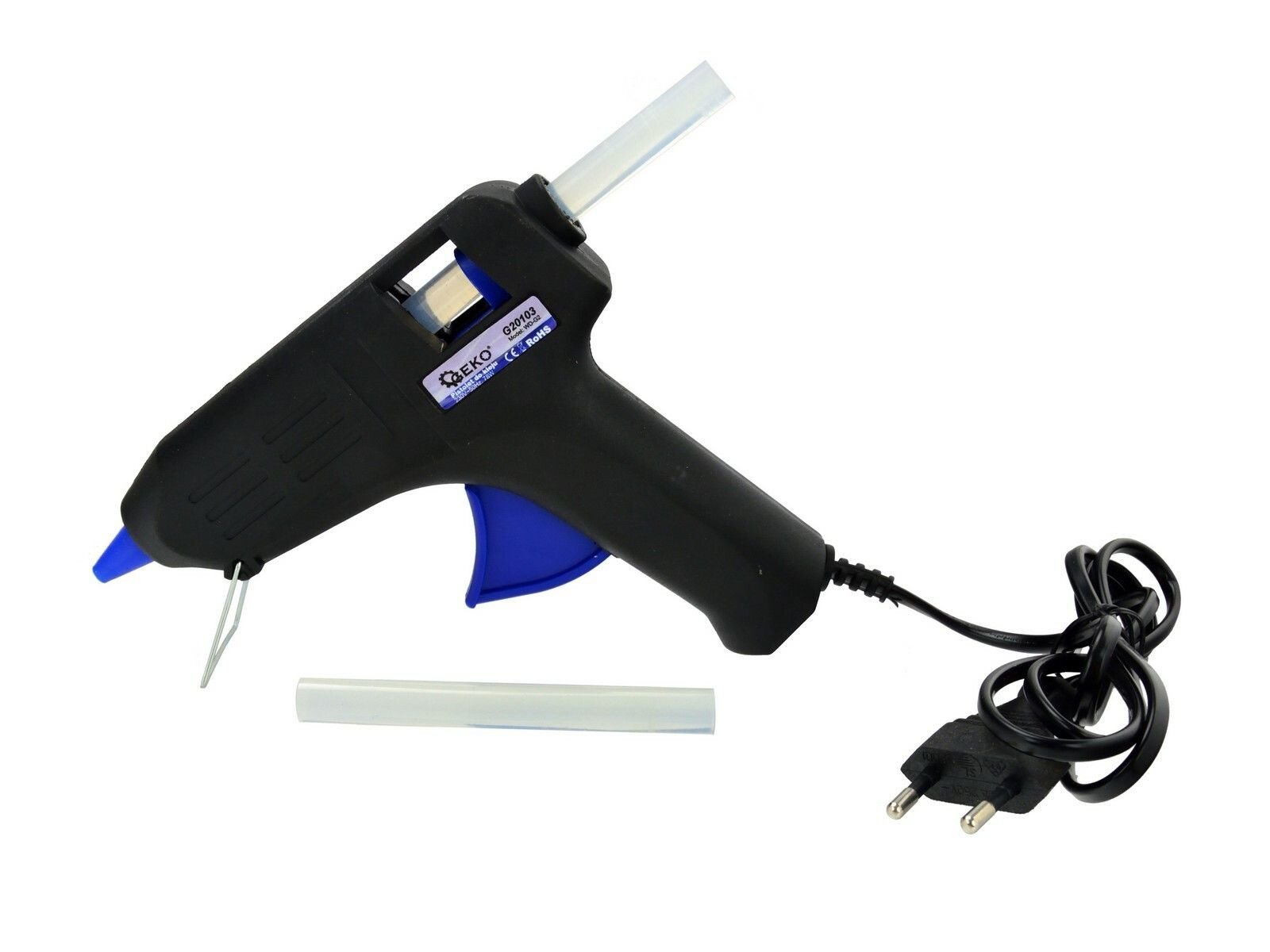 Pistolet do kleju na gorąco przeznaczony jest do szybkiego sklejenia papieru, korka, drewna, skóry, tkanin, tworzyw sztucznych, ceramiki itp. Dźwignia mechanicznego posuwu umożliwia delikatne, płynne i precyzyjne dozowanie stopionego kleju w żądane miejsce.