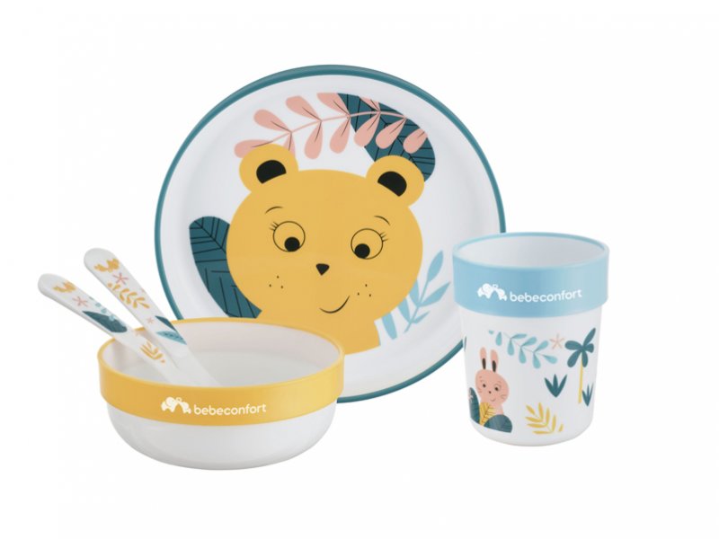 5-dílná jídelní sada v krásném designu s potiskem s motivy zvířátek obsahuje dětský talíř, misku, kelímek, lžíci a vidličku. Sada je ideální pro učení dítě samostatnosti při krmení. Všechny součásti sady je možné mýt v myčce. Neobsahuje BPA. Vhodné pro děti od 12 měsíců. przeczytaj całość