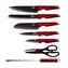 • Materiál: nerezová ocel s černým nepřilnavým povrchem• Nůž šéfkuchařský 20 cm• Nůž na chléb 20 cm• Nůž Santoku 17,5 cm• Nůž univerzální 12,5 cm• Kuchyňský nůž 9 cm• Ocílka• Nůžky• 360° akrylový stojan• Barva: vínová • Přesná laserem broušená čepel z nerezové oceli• Ergonomicky navržená odolná,...