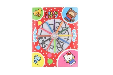 Omalovánky s motivem Hello Kitty. Balení obsahuje 12 barevných pastelek. Věk 3+ przeczytaj całość