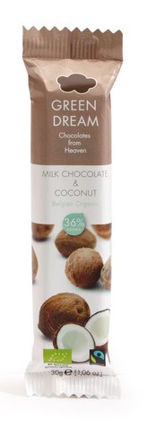 BIO mléčná čokoládová tyčinka s kokosem 30g*