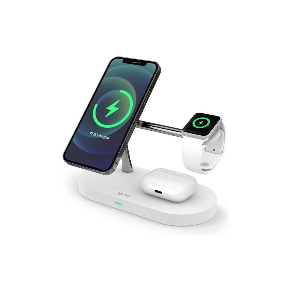 Spello 3v1 bezdrátová nabíječka s podporou uchycení MagSafe bílá