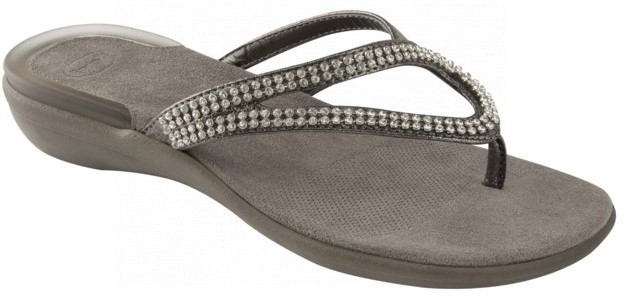 Dámské zdravotní pantofle Scholl Lulu ve stříbrné barvě. Model Lulu je zdoben kamínky a je vhodný pro běžné denní nošení. Zdravotní stélka Gelactiv. Biomechanicky navržené tak, aby se přizpůsobily přirozenému pohybu chodidla. Vložky Technogel tlumí nárazy při chůzi a snižuje tlak na nejcitlivější místa chodidla, předchází vzniku bolesti paty a lépe rozděluje hmotnost na celou stélku.