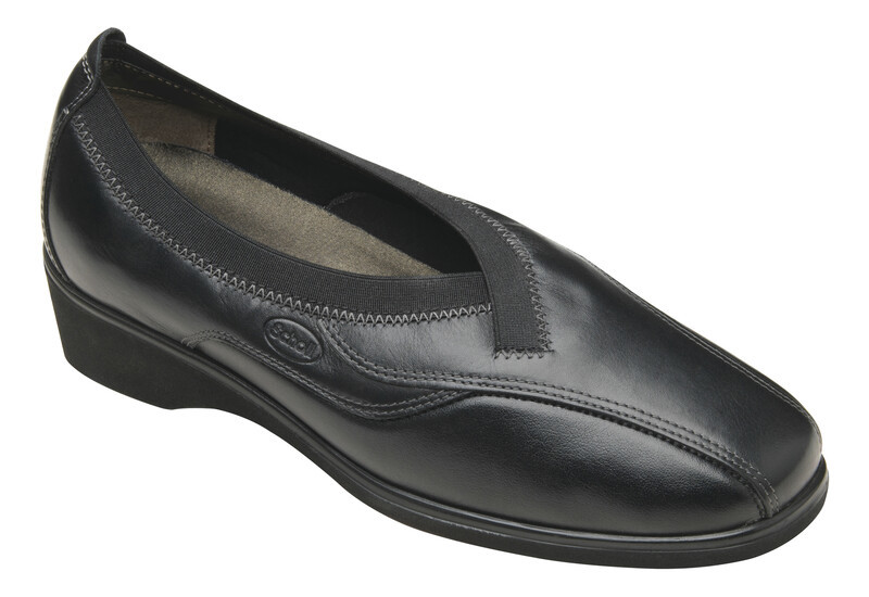 Pohodlné černé polobotky s přizpůsobivým elastickým lemem. przeczytaj całość
