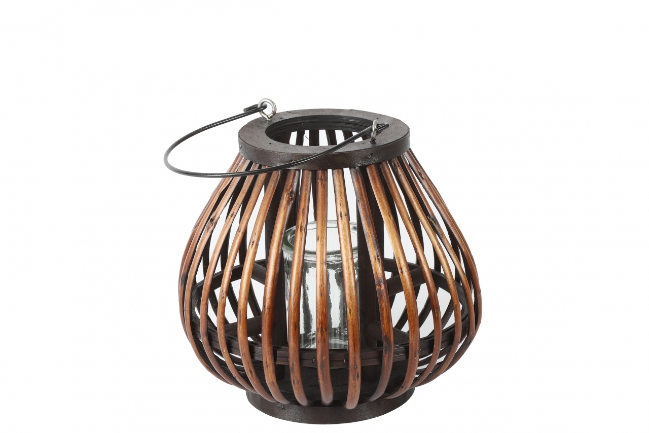 Dřevěná lucerna se skleněným kalíškem a kovovým uchem.Materiál: dřevo, sklo, kovRozměry:výška 22 cmprůměr 23 cm przeczytaj całość